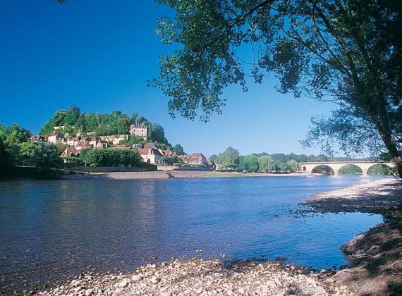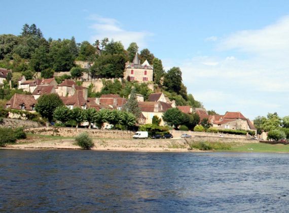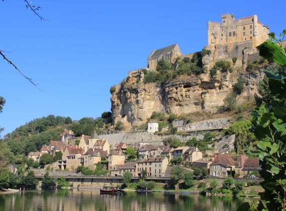 Beynac is unique because its fortress was built beneath a rock overhang halfway up a cliff and houses the Musée National de Préhistoire.  The river formed the dividing line between the French and English armies during the Hundred Years War, with the French holding the highly fortified feudal fortress on the cliff top at Beynac, and the English, the gloriously situated 12th century castle at Castelnaud directly opposite. The view from Beynac is well worth the climb up from the village.
