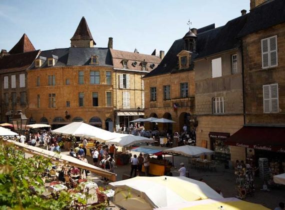 Sarlat-la-Canéda situated in the heart of this region evokes the past when it was once the home of merchants, scholars, clerks and law students. Much of its charm lies in its narrow streets, secluded courtyards and old buildings, in particular the materials used to construct them: yellow ochre building stone, white limestone roof tiles or thick grey slates from the Corrèze. Today the protected town centre offers remarkable architecture like the Maison de la Boetie, the cathedral, la Chapelle des Pénitents Blancs and la Lanterne des Morts.  The layout of the town lends itself to street entertainment and shows in July and August.